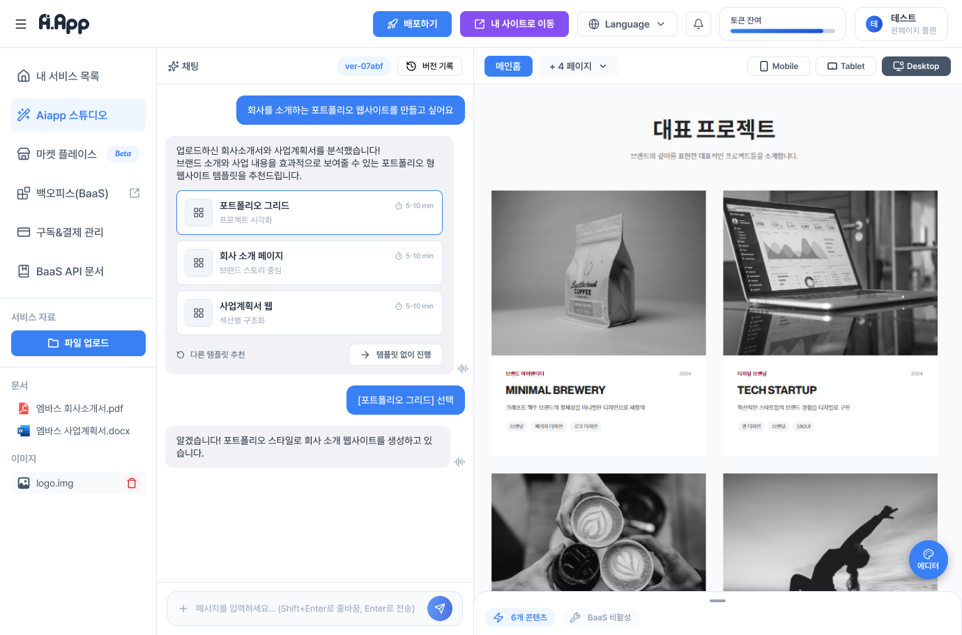 코딩 없이 대화만으로 나만의 서비스를 완성하세요.