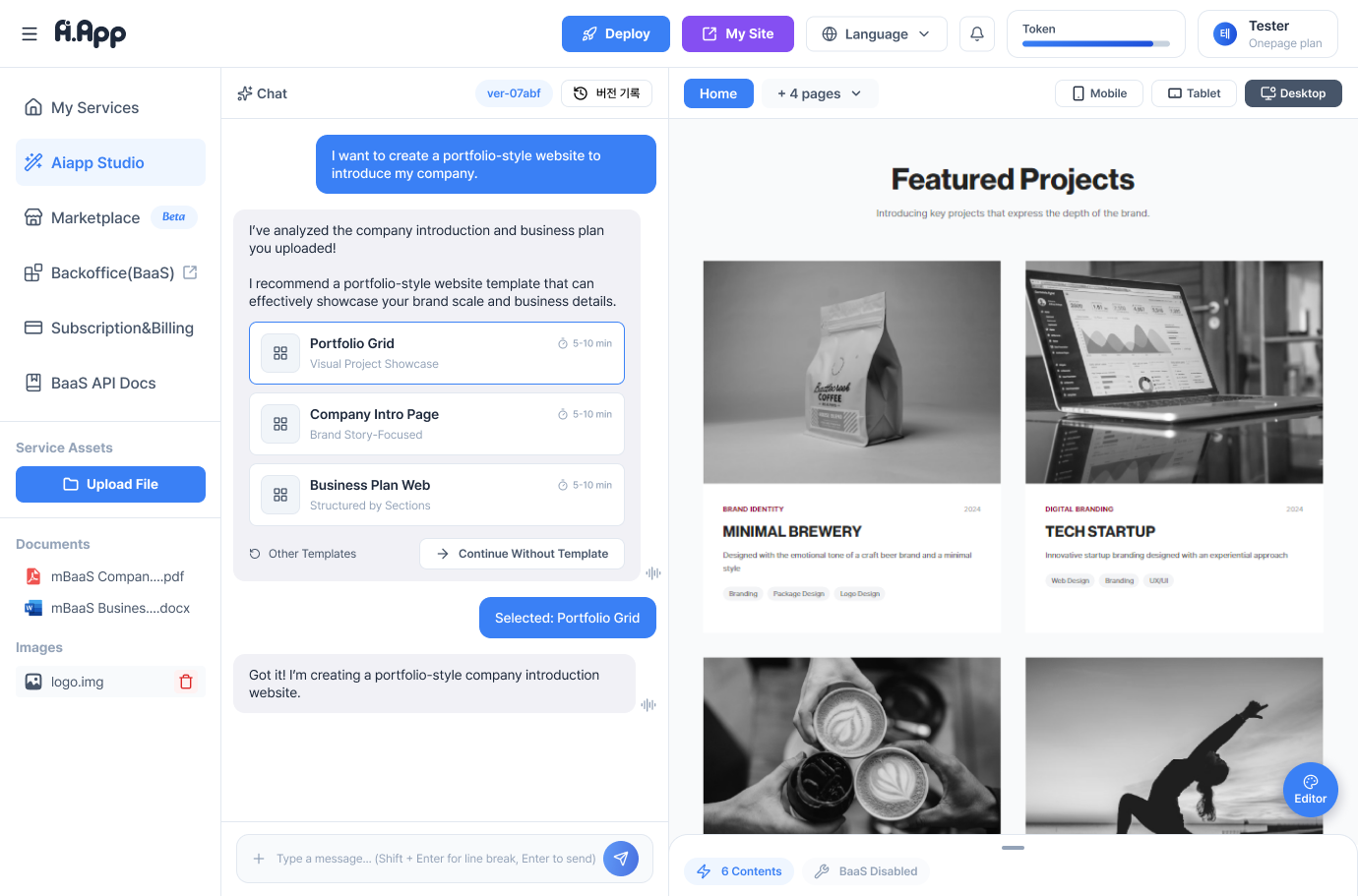 Manage web/app projects created with the AiApp service, and use them by simply connecting to BaaS via API.